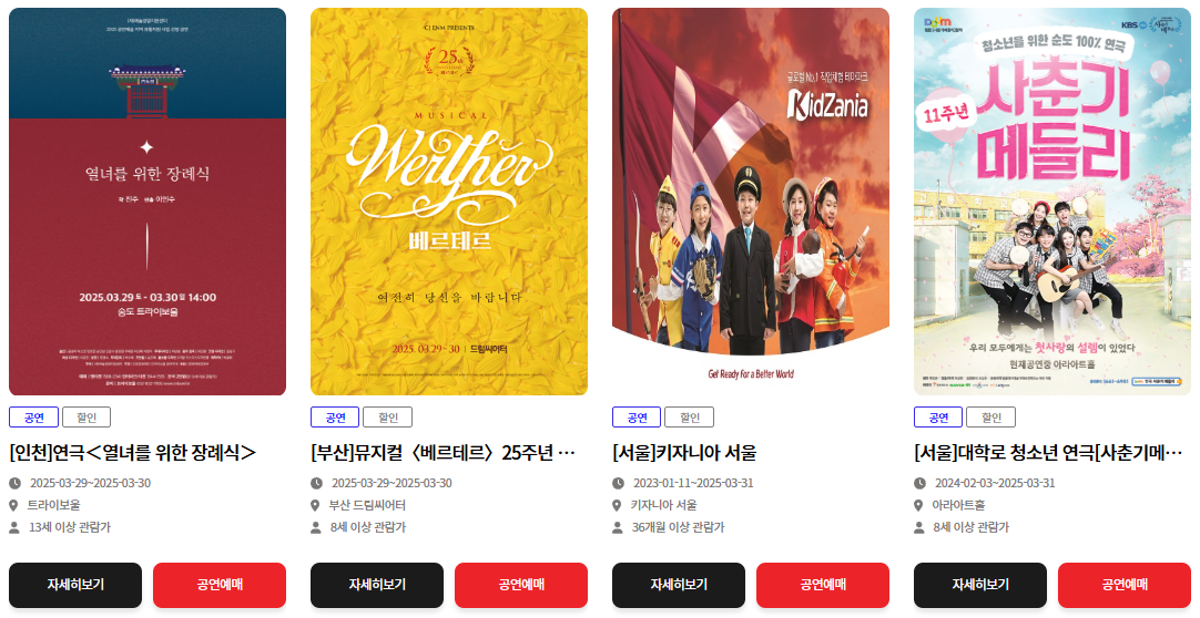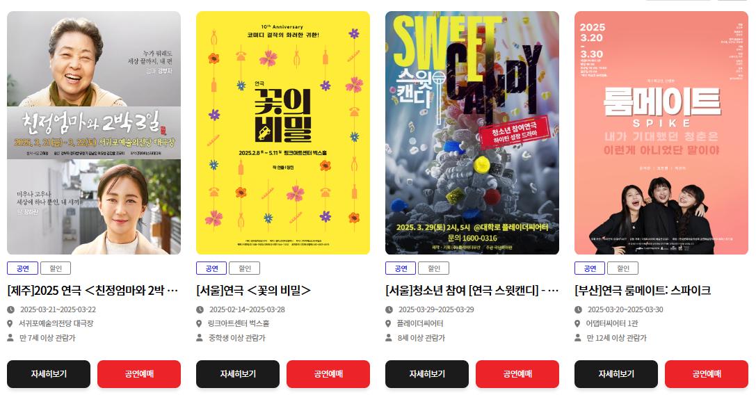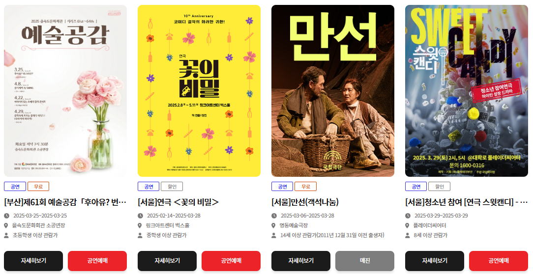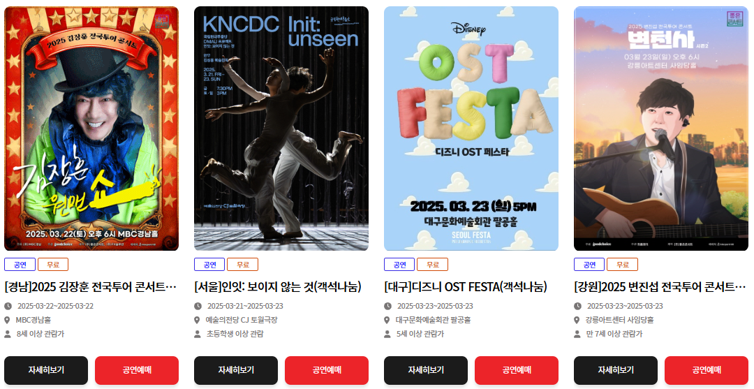 공연/전시 선택: 원하는 공연·전시를 검색하여 선택합니다.