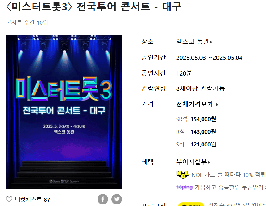 미스터트롯3 전국투어 콘서트 대구 예매 시 적용 가능한 할인 혜택도 다양하게 마련되어 있습니다.