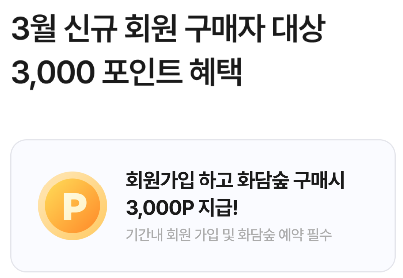 - 야놀자 신규 회원: 3월 1일~3월 31일 가입 후 첫 구매 시 3000포인트 적립을 받을수 있습니다.